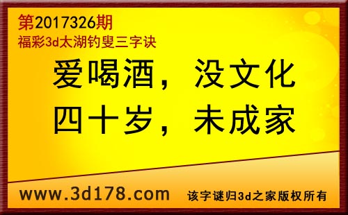 3d第17326期太湖字谜:爱喝酒,没文化,四十岁,未成家