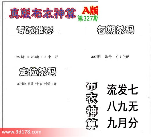 3d之家布衣图库之布衣神算图第2017327期详解: