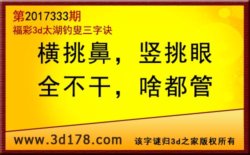 3d第17333期太湖字谜:横挑鼻,竖挑眼,全不干,啥都管