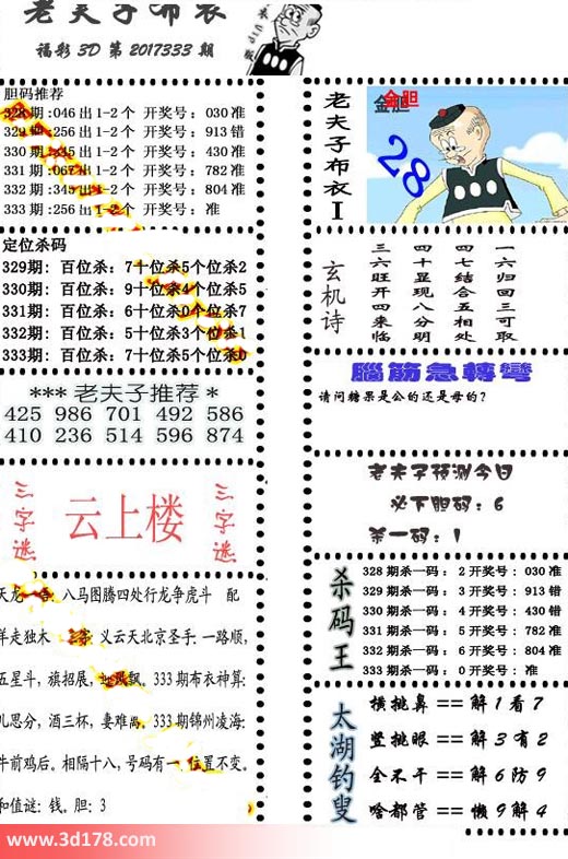 福彩3d第2017333期老夫子布衣图详情:
