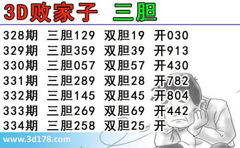 福彩3d第2017334期败家子胆码推荐: