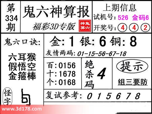 3d第17334期鬼六神算报为您推荐鬼六口诀: