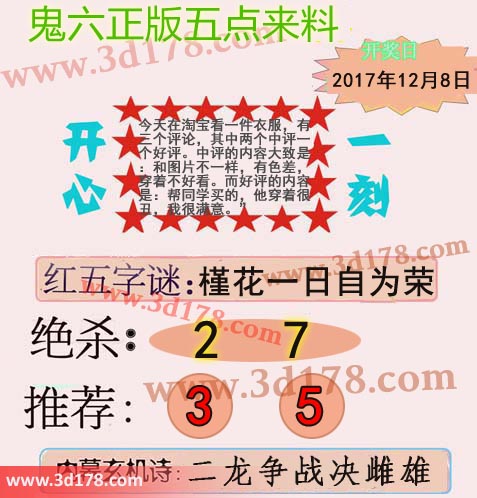 福彩3d第2017335期鬼六五点来料: