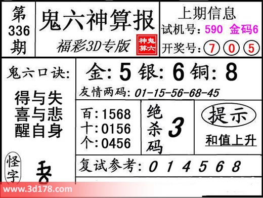3d第17336期鬼六神算报为您推荐鬼六口诀: