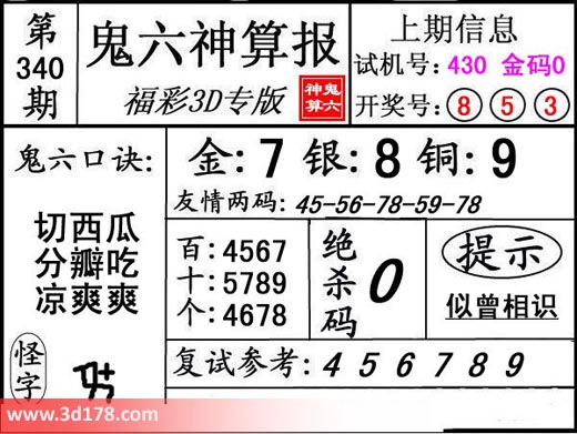 3d第17340期鬼六神算报为您推荐鬼六口诀: