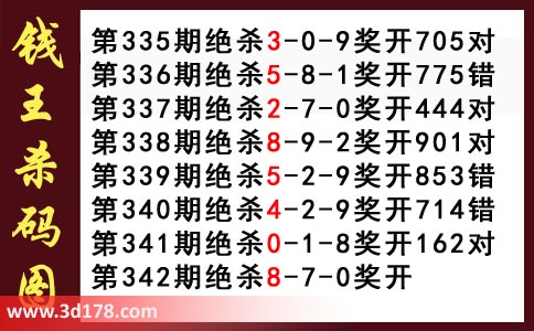 近期3d钱王杀码具体详情: