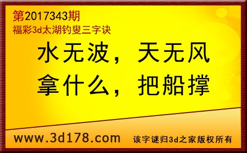 3d第17343期太湖字谜:水无波,天无风,拿什么,把船撑