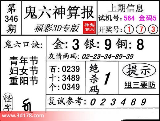 3d第17346期鬼六神算报为您推荐鬼六口诀: