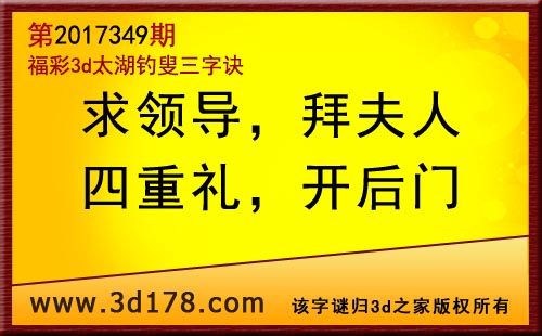 3d第17349期太湖字谜:求领导,拜夫人,四重礼,开后门