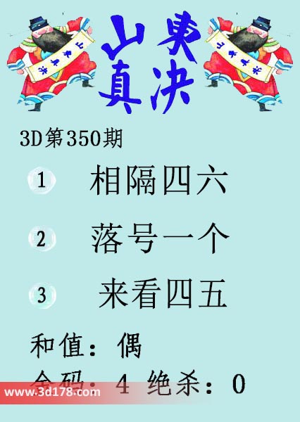 福彩3d第17350期山东真诀图如下所示:
