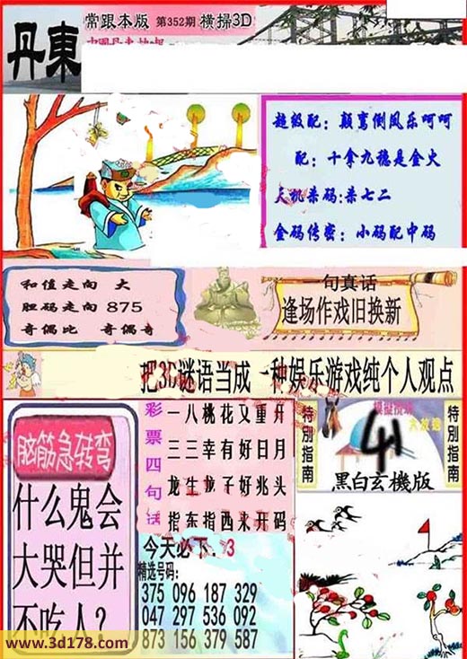 3d之家第2017352期丹东快报图:3d第2017352期丹东快报图详解:天机杀码:杀七二和值走向:大胆码走向:875奇偶比:2:1金码传密:小码配中码精选号码:375 096 187 329 047 298 536 092 873 156 379 587脑筋急转弯:什么鬼会大哭但并不吃人?该丹东图库由3d之家3d图库频道原创,仅供彩民参考,温馨提供。