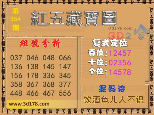 福彩3d第2017354期红五藏宝图:复式定位:百位:12457