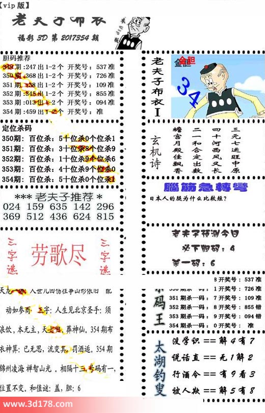 福彩3d第2017354期老夫子布衣图详情: