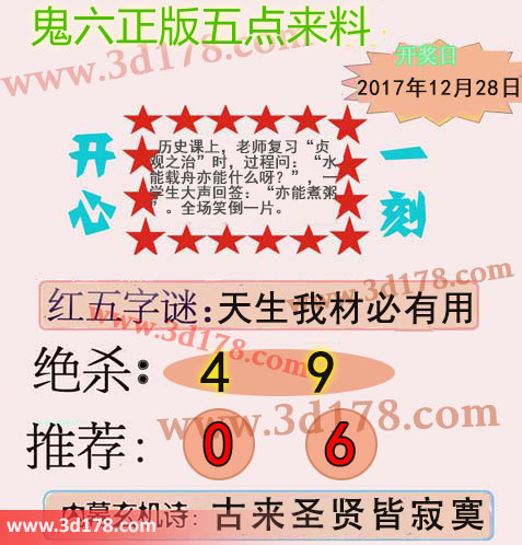 3d鬼六五点来料详解第2017355期: