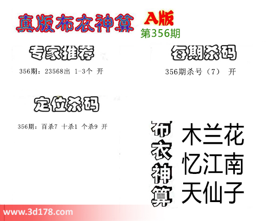 3d之家布衣图库之布衣神算图第2017356期详解: