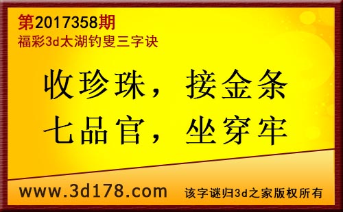 3d第17358期太湖字谜:收珍珠,接金条,七品官,坐穿牢