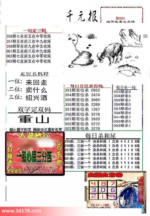 福彩3d第2018003期布衣千元报图详情分析如下: