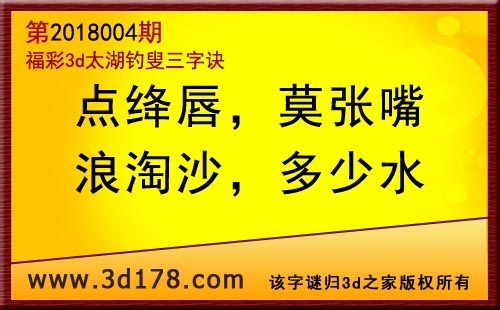 3d第18004期太湖字谜:点绛唇,莫张嘴,浪淘沙,多少水