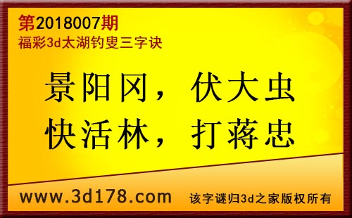 3d第18007期太湖字谜:景阳冈,伏大虫,快活林,打蒋忠