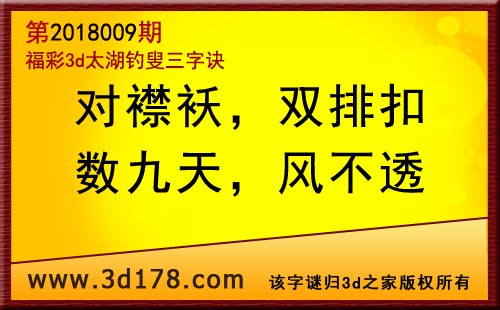 3d第18009期太湖字谜:对襟袄,双排扣,数九天,风不透