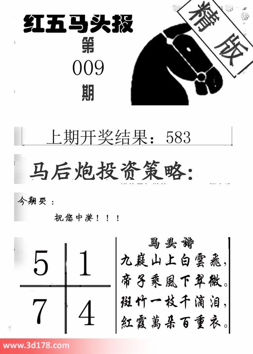 3d第2018009期红五马头报本期马头诗详解: