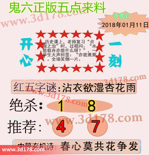 福彩3d第2018011期鬼六五点来料: