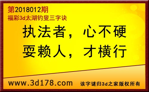 3d第18012期太湖字谜:执法者,心不硬,耍赖人,才横行