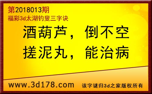 3d第18013期太湖字谜:酒葫芦,倒不空,搓泥丸,能治病