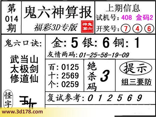 3d第18014期鬼六神算报为您推荐鬼六口诀: