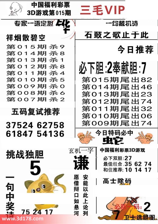 3d第2018015期三毛VIP详解:
