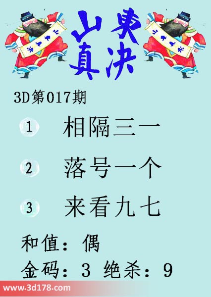 福彩3d第18017期山东真诀图如下所示: