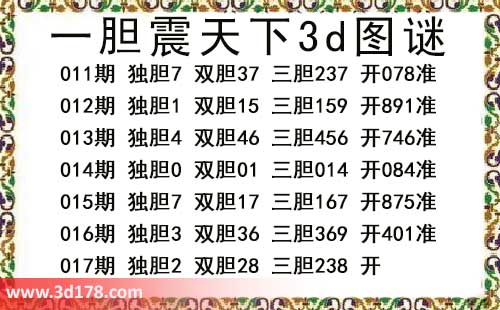 一胆震天下三胆图库由3d之家3d图库频道原创,仅供彩民参考,温馨提供。