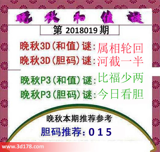 晚秋p3(胆码)谜:今日看胆