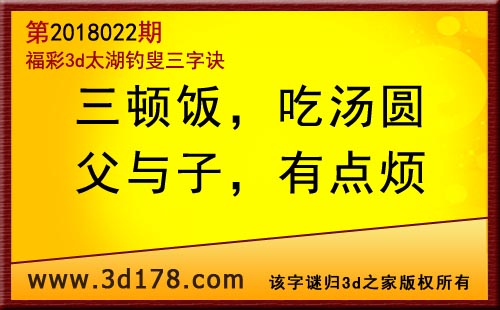 3d第18022期太湖字谜:三顿饭,吃汤圆,父与子,有点烦