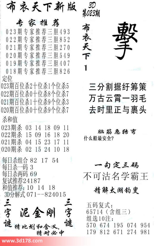 福彩3d第2018023期福彩3d布衣天下新版: