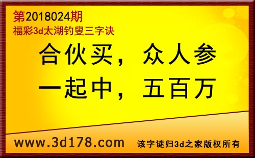 3d第18024期太湖字谜:合伙买,众人参,一起中,五百万