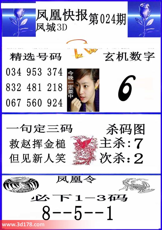 福彩3d凤凰快报图第18024期精选号码推荐:
