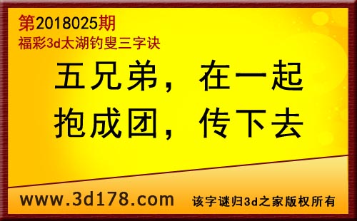 3d第18025期太湖字谜:五兄弟,在一起,抱成团,传下去