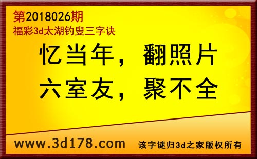3d第18026期太湖字谜:忆当年,翻照片,六室友,聚不全