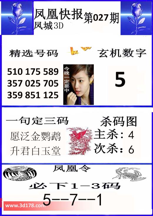 福彩3d凤凰快报图第18027期精选号码推荐: