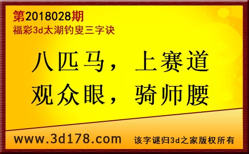 3d第18028期太湖字谜:八匹马,上赛道,观众眼,骑师腰