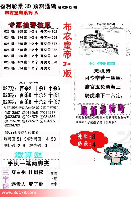 福彩3d第2018029期布衣皇帝A版布衣专家独家推荐: