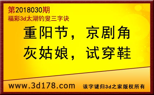 3d第18030期太湖字谜:重阳节,京剧角,灰姑娘,试穿鞋