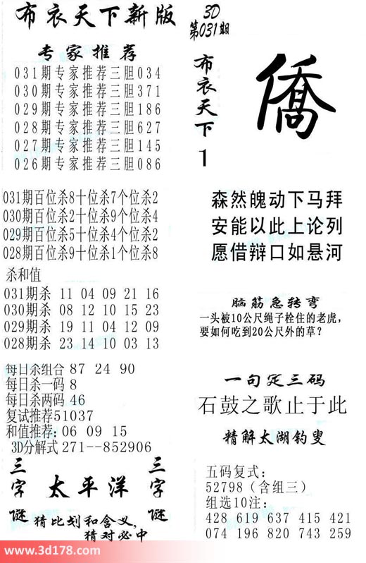福彩3d第2018031期福彩3d布衣天下新版: