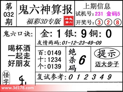 3d第18032期鬼六神算报为您推荐鬼六口诀: