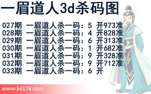 该一眉道人3d杀码图由3d之家3d图库频道原创,仅供彩民参考,温馨提供。