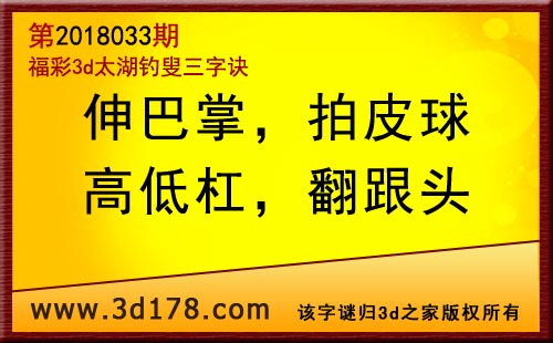 3d第18033期太湖字谜:伸巴掌,拍皮球,高低杠,翻跟头