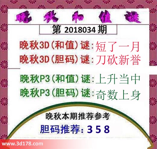 晚秋p3(和值)谜:上升当中