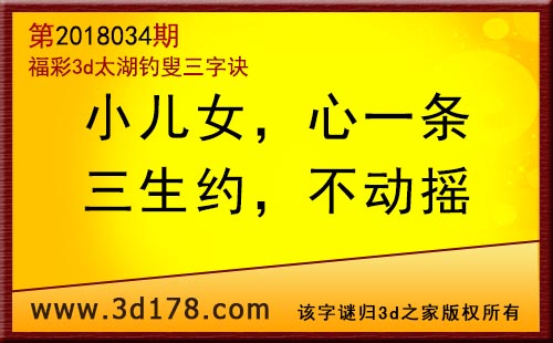3d第18034期太湖字谜:小儿女,心一条,三生约,不动摇