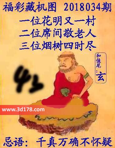 福彩3d第2018034期正版藏机图详解: